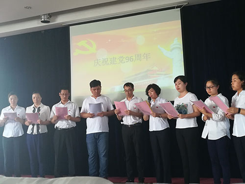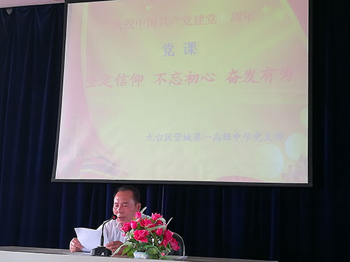 2017年6月29日,营城一中全体党员在六楼会议室举行了建党96周年庆祝活动。 本次庆祝活动由三部分组成: 第一,刘忠诚书记给全体党员上了一节以“坚定信仰,不忘初心,奋发有为”为题的党课。 第二,全体党员重温了入党誓词。 第三,以文科党小组、理科党小组和机关党小组为单位,举行了“永远跟党走”诗歌演唱会。