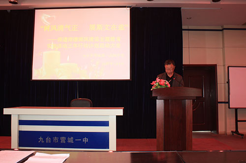 马占峰校长在讲话中首先肯定了营城一中一直传承的优良师德传统,这是营城一中多年来不断发展的基石。同时他也指出了在教师队伍中现在存在的问题,提出了解决问题的初步办法。他在讲话中说,教师要有敬畏之心,要敬畏我们的职业,要敬畏良心;教师要有责任意识,只有肩负起自己的责任,才能成就人生的辉煌;教师要心中充满爱,要爱我们的职业,爱校,爱学生。我们只要充满爱,学生才能在爱的阳光下茁壮成长。