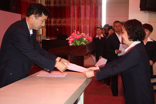 4、各组室负责人代表本组室教师向校长递交师德师风承诺书。